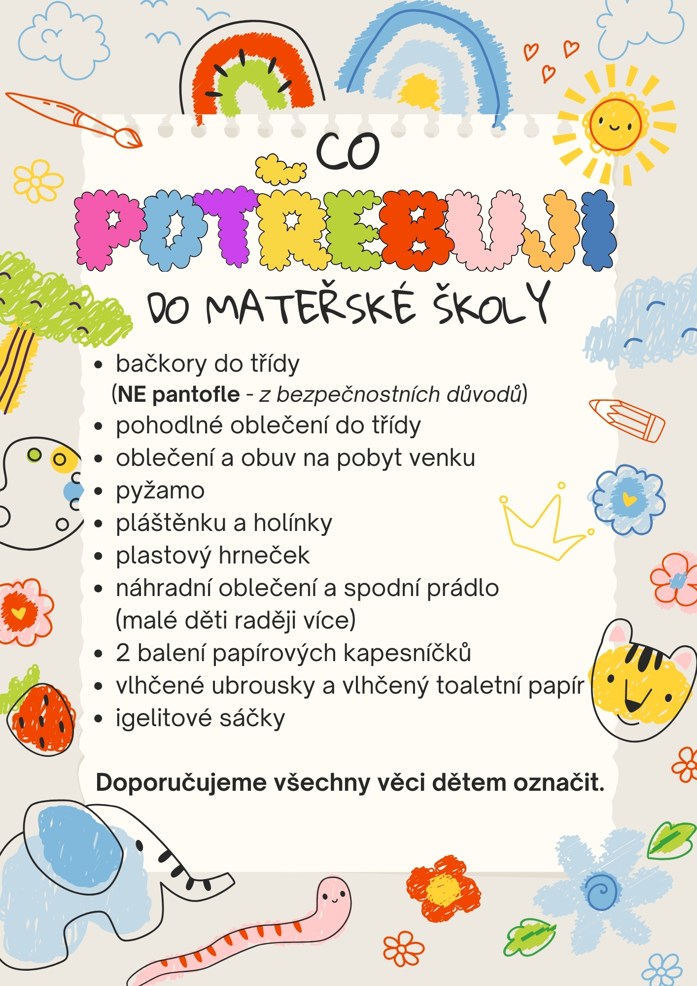 Co potřebuje dítě do MŠ